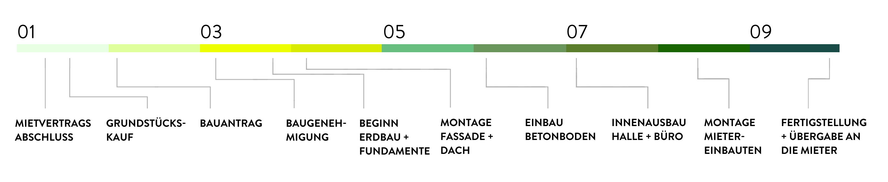 Durch die Vernetzung unserer Kompetenzen auf den Gebieten Projektentwicklung, Projektsteuerung und Architektur können wir Ihnen optimale Funktionalität, Kostensicherheit und Termingenauigkeit bei der Projektrealisierung garantieren. Hier der beispielhafte Ablauf eines Projektes – von der Angebotsabgabe bis zur Fertigstellung in nicht mal 10 Monaten.